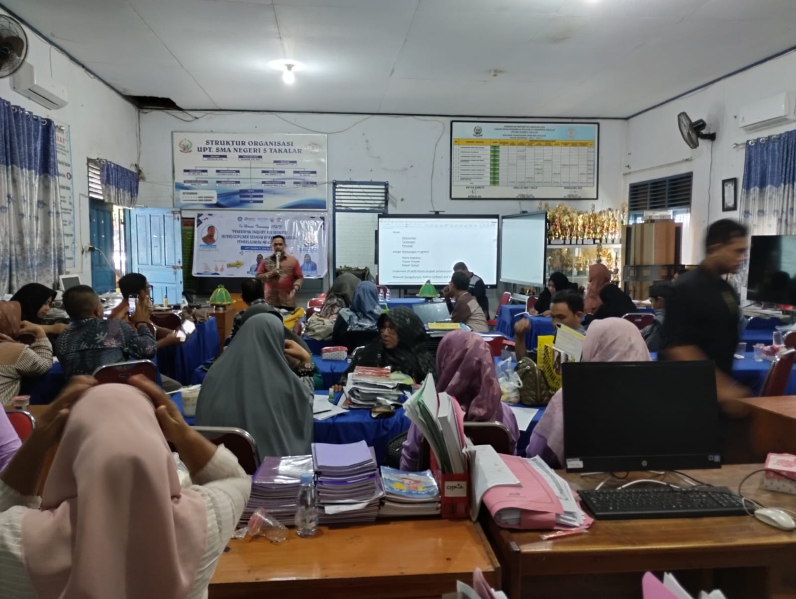 TAKALAR, Aliefmedia.com – UPT SMA Negeri 5 Takalar kembali menunjukkan komitmennya dalam meningkatkan mutu pendidikan melalui penyelenggaraan In-House Training (IHT) bertema “Penerapan Inquiry Kolaboratif Interdisipliner sebagai Upaya Penguatan Pembelajaran Mendalam.” Kegiatan ini berlangsung pada Jumat (14/11/2025) dan diikuti seluruh pendidik, serta menghadirkan narasumber dari Balai Besar Guru dan Tenaga Kependidikan (BBGTK) Sulawesi Selatan.