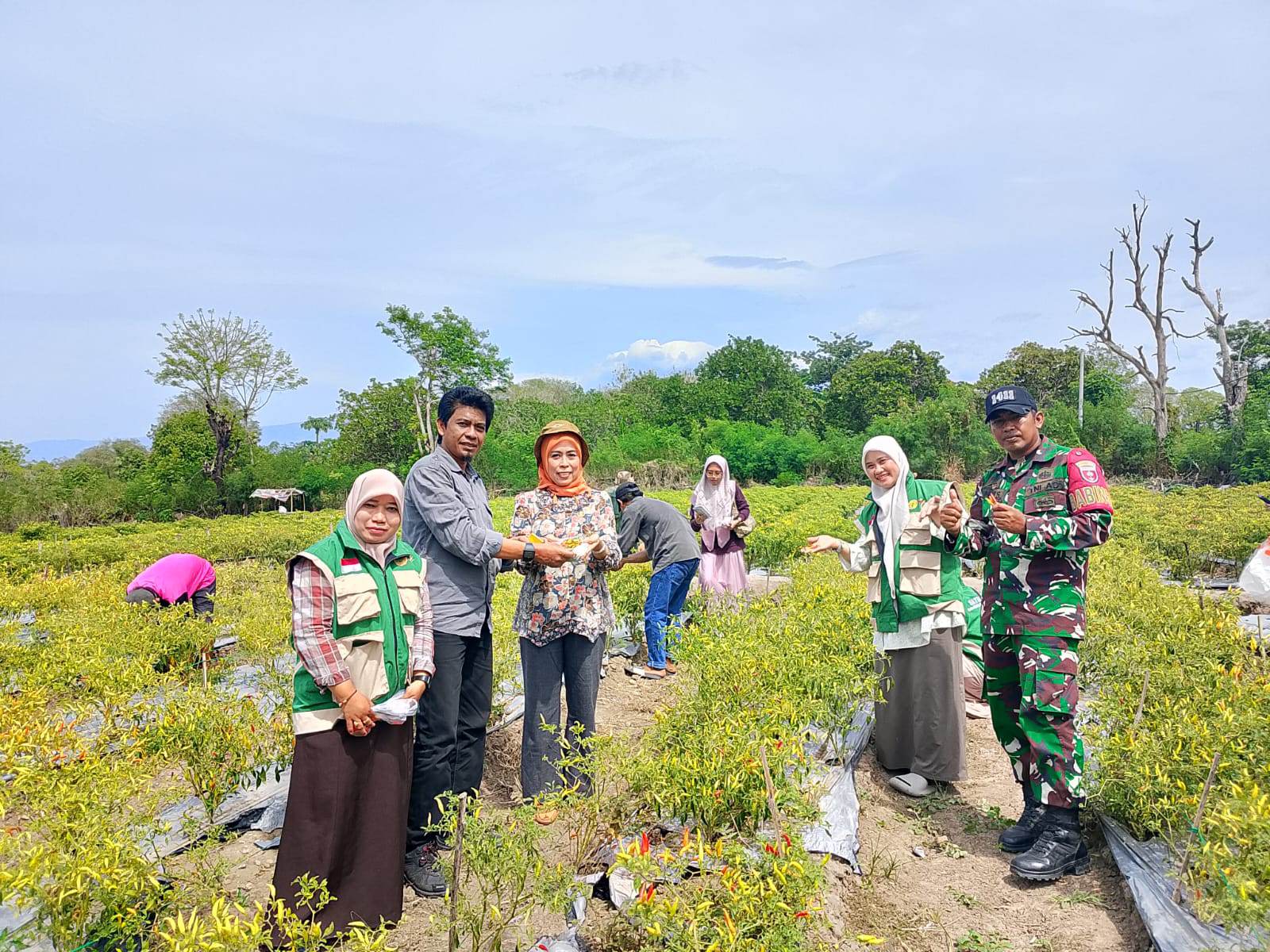 Setelah sesi pertemuan dan diskusi, para undangan diarahkan menuju lokasi kebun cabai milik Kelompok Tani Mujur Bersama untuk melakukan peninjauan langsung hasil perkebunan. Kegiatan dilanjutkan dengan panen cabai secara seremonial oleh para tamu undangan sebagai simbol keberhasilan budidaya yang telah dilakukan.